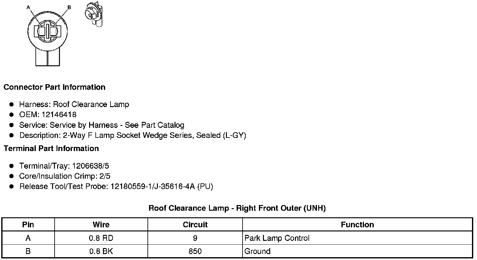 Roof Clearance Lamp - Right Front Outer (UNH)