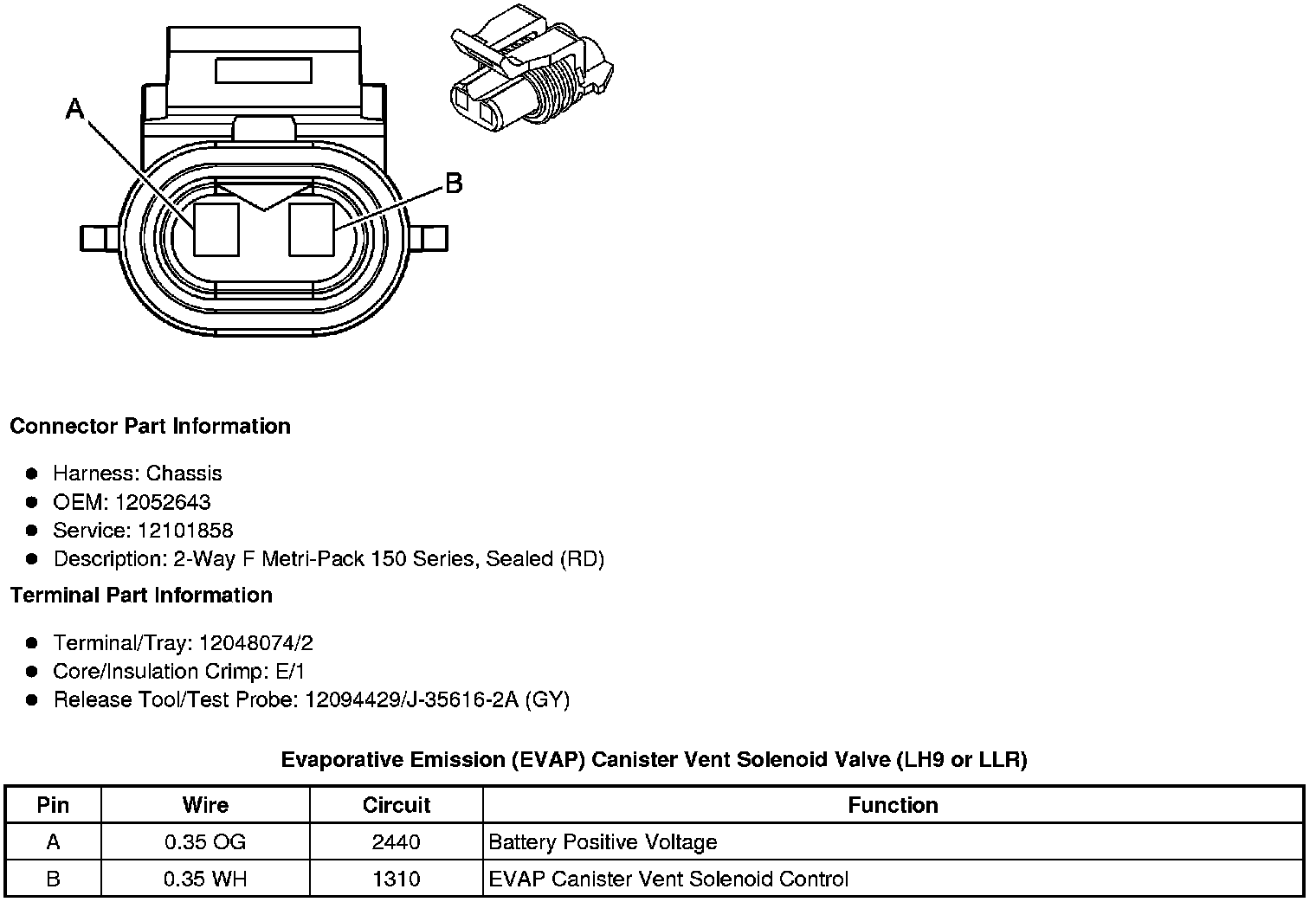 Evaporative Emission (EVAP) Canister Vent Solenoid Valve (LH9 or LLR)