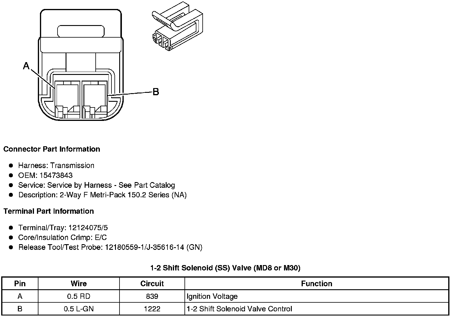 1-2 Shift Solenoid (SS) Valve (MD8 or M30)