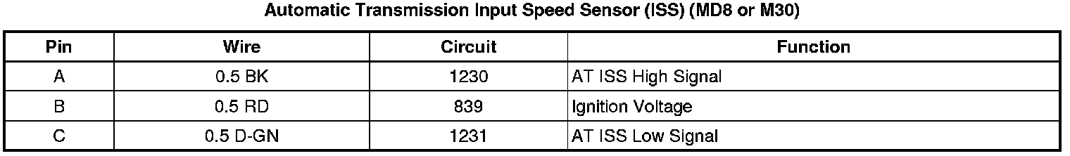Automatic Transmission Input Speed Sensor (ISS) (MD8 or M30)