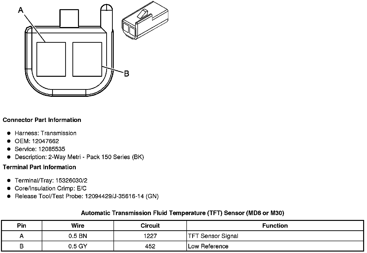 Automatic Transmission Fluid Temperature (TFT) Sensor (MD8 or M30)