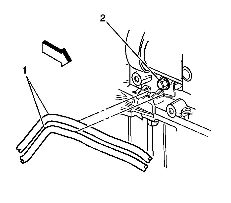 55. Connect the inlet heater hose quick connect (1) to the heater core (2).