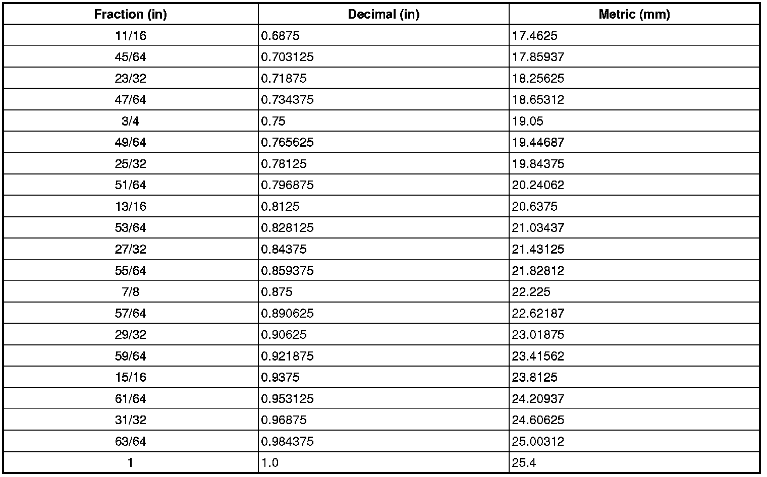 Decimal and Metric Equivalents