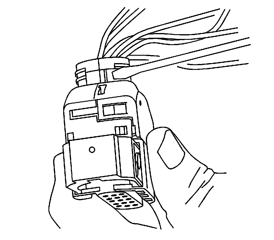 9. Insert the J 38125-12A tool to release the terminals by inserting the tool into the terminal release cavity. See the release tool cross reference in the Reference Guide of the J-38125 to ensure that the correct release tool is used.