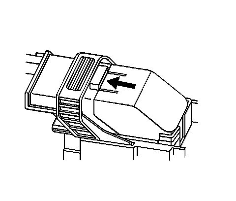 3. Locate the dress cover locking tabs at the front of the connector. Using a small flat-blade tool push down on one of the locking tabs and pull the cover up until the dress cover releases. Repeat this procedure for the other locking tab.