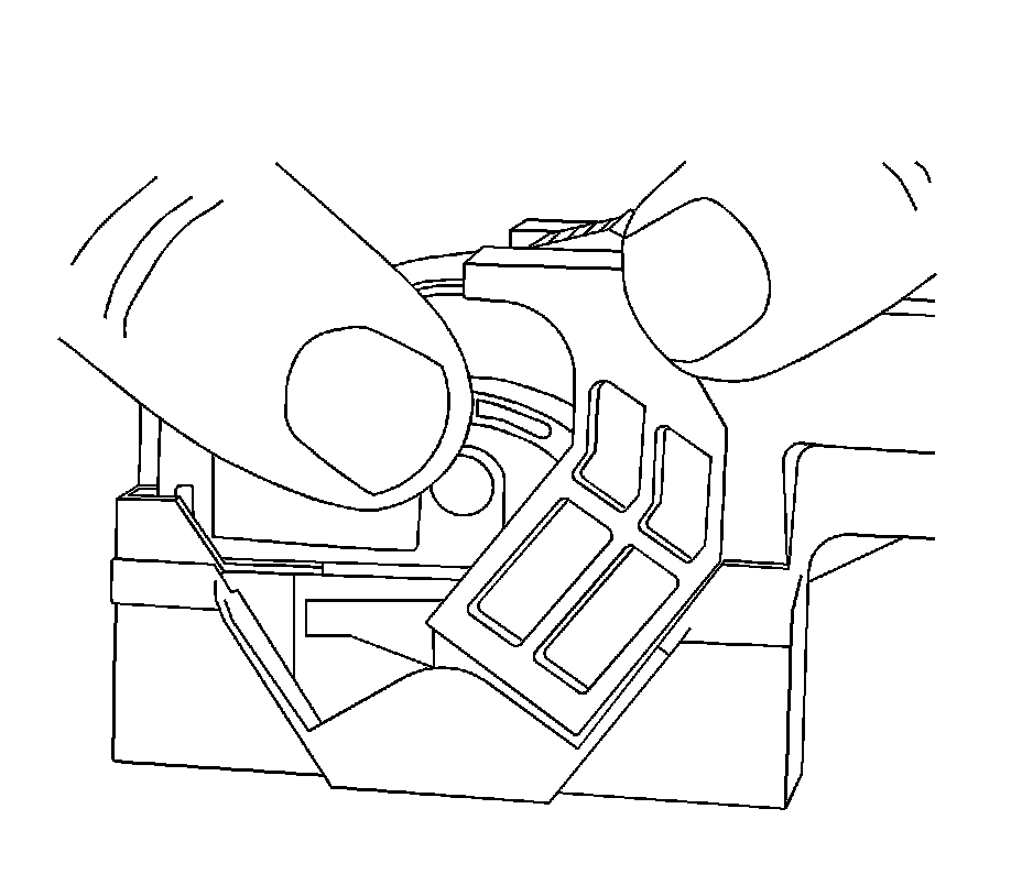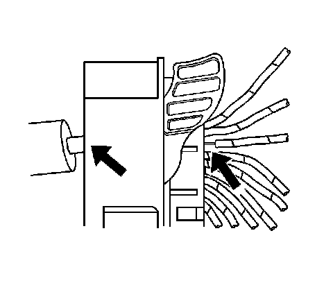 6. Insert the J 38125-21 tool into the round canal between the terminals cavities at the front of the connector. See the release tool cross reference in the Reference Guide of the J-38125 to ensure that the correct release tool is used.