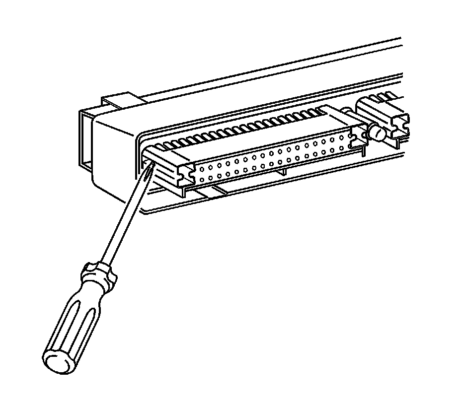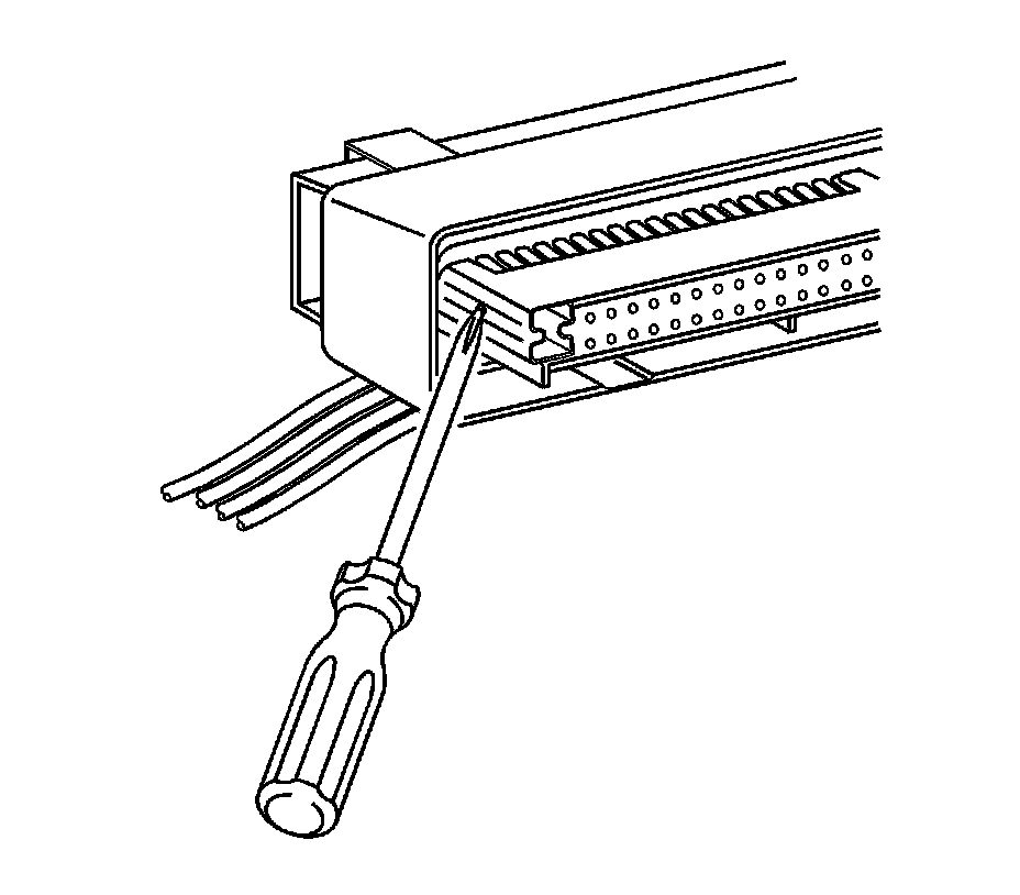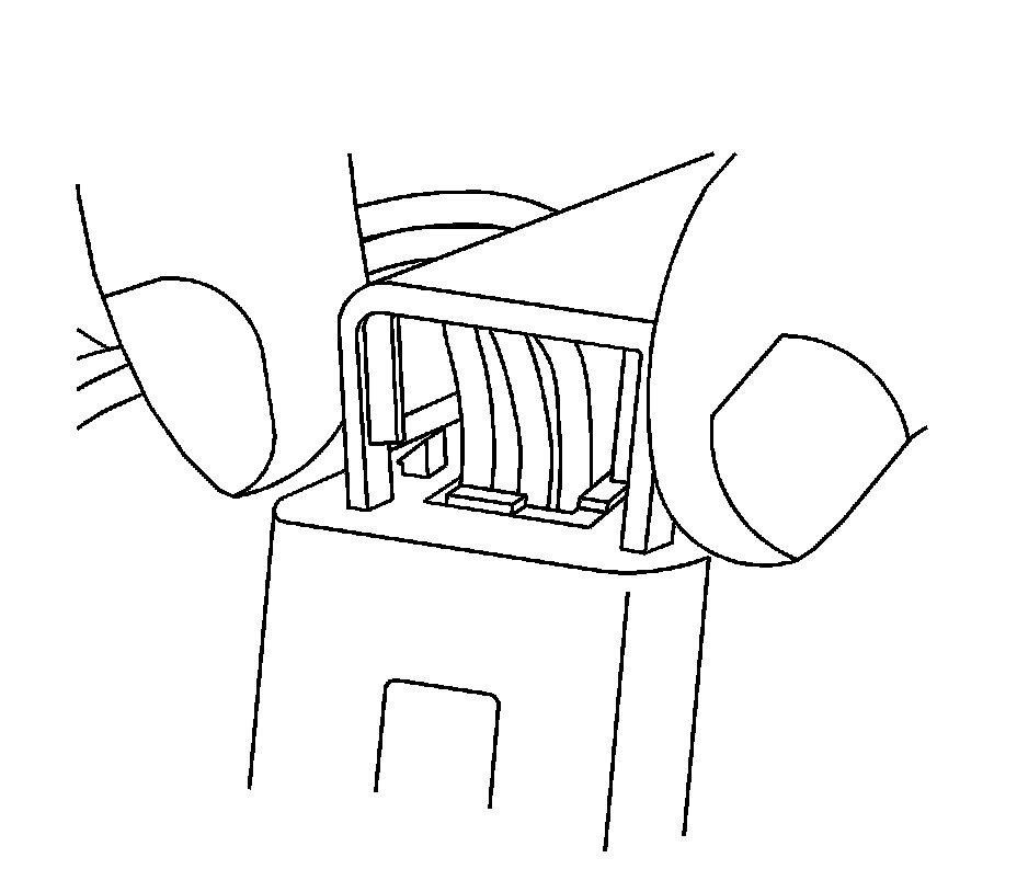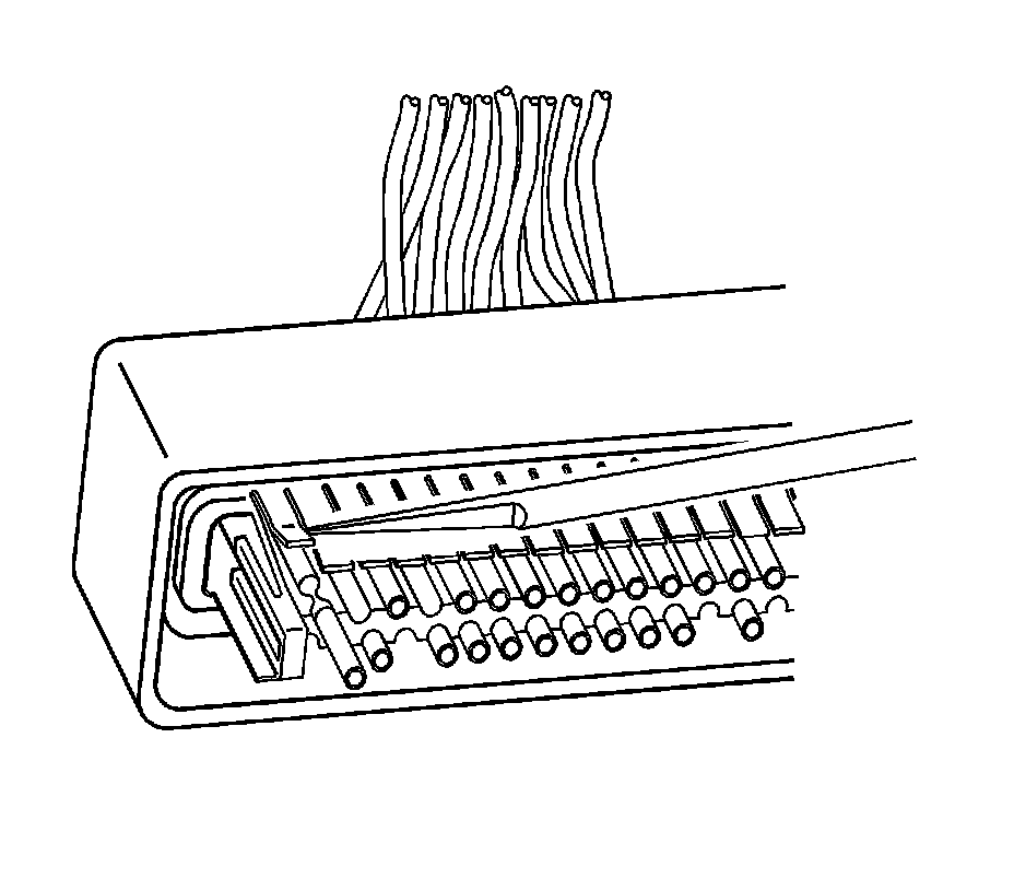 9. Use J 38125-12A to gently lift the terminal retaining tab while gently pulling the wire out of the back of the connector. Always remember never use force when pulling a terminal out of a connector. See the release tool cross reference in the Reference Guide of the J-38125 to ensure that the correct release tool is used.