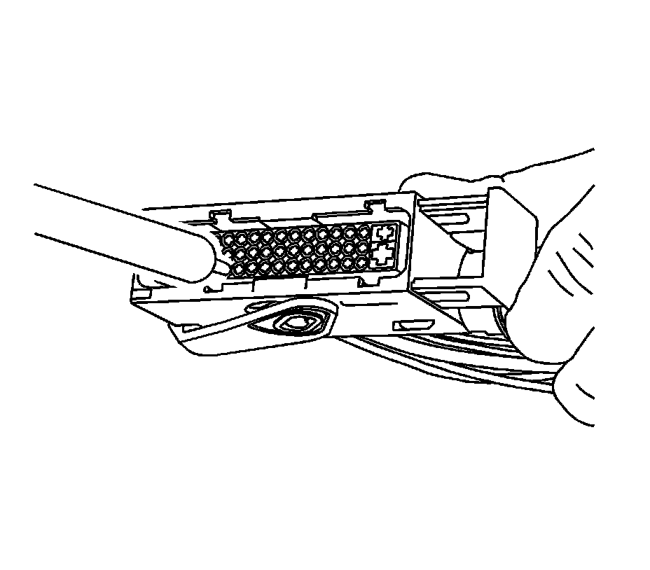 For the larger terminals insert the J 38125-556 tool to release the terminals by inserting the tool into the terminal release cavity. For the smaller terminals insert the J 38125-560 tool to release the terminals by inserting the tool into the terminal release cavity. See the release tool cross reference in the Reference Guide of the J-38125 to ensure that the correct release tool is used.