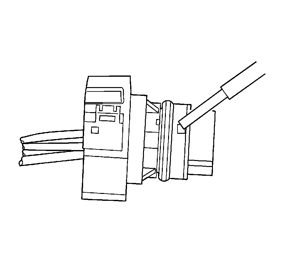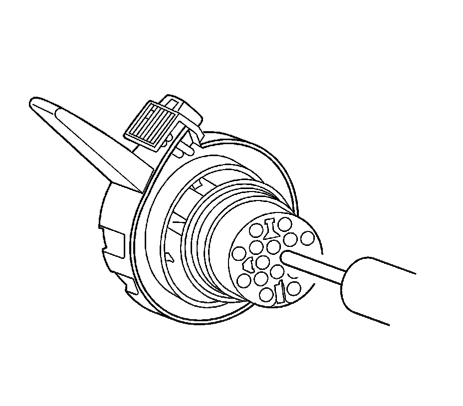 4. Use the J 38125-28 tool to release the terminals by inserting the tool into the terminal cavity as shown in the graphic. See the release tool cross reference in the Reference Guide of the J-38125 to ensure that the correct release tool is used.