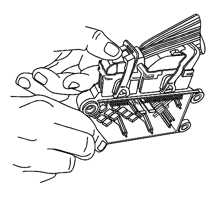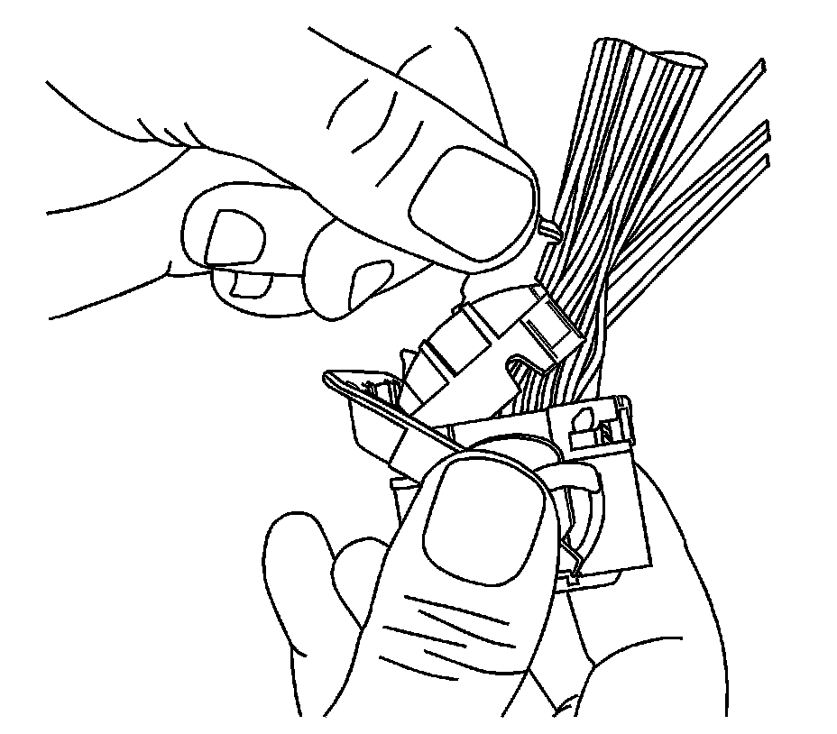 3. Using terminal tool J-38125-11A or equivalent, release the wire dress cover locking tabs.
