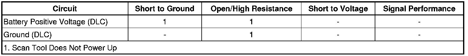1. Ignition ON, test for battery voltage between the battery positive voltage circuit of the DLC and ground.