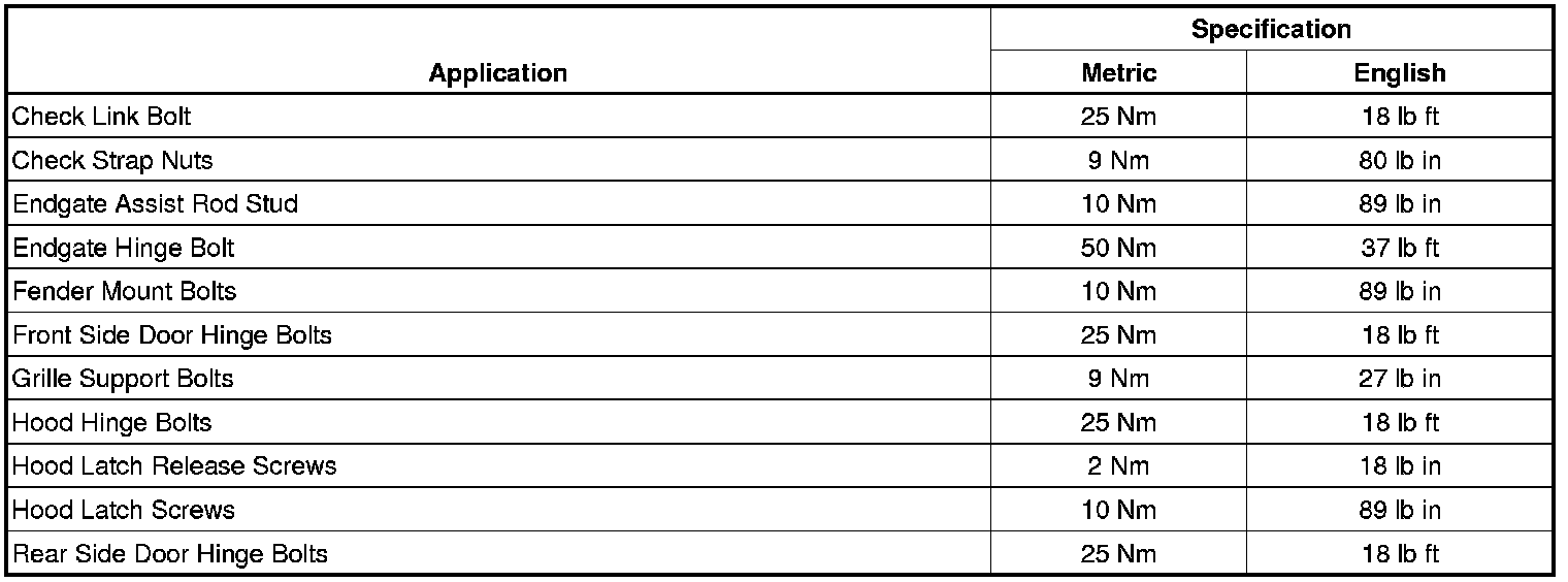 Fastener Tightening Specifications