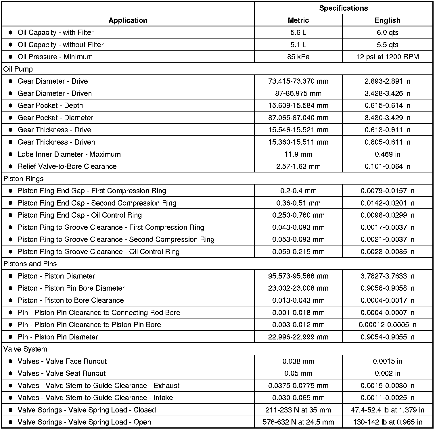 Engine Mechanical Specifications
