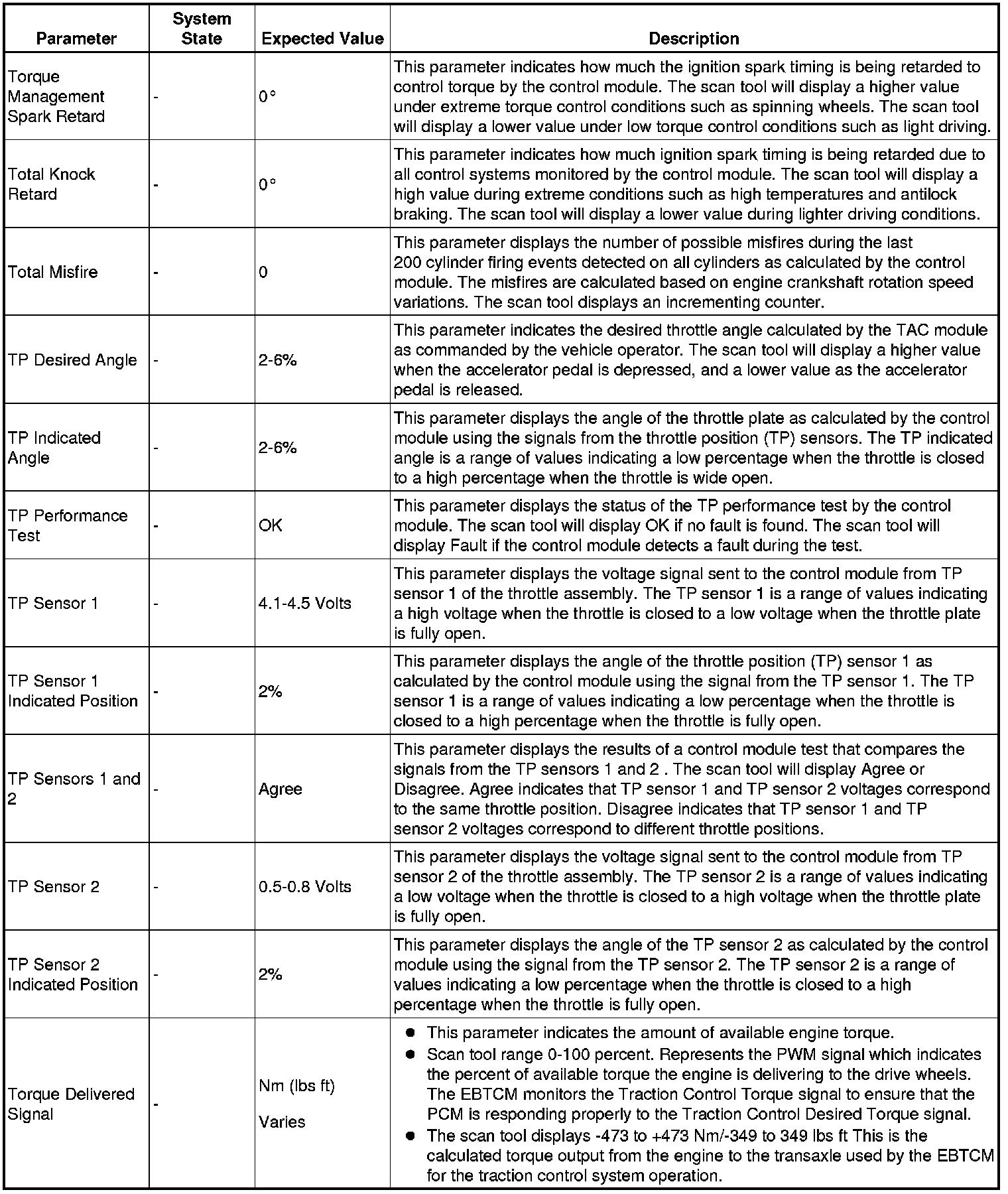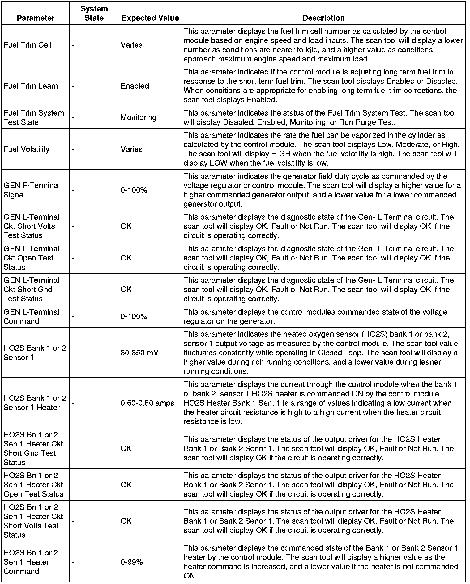 The Engine Control Module Scan Tool Data List contains all engine-related parameters that are available on the scan tool. The list is arranged in alphabetical order. A given parameter may appear in any one of the data lists, and in some cases may appear more than once, or in more than one data list in order to group certain related parameters together.