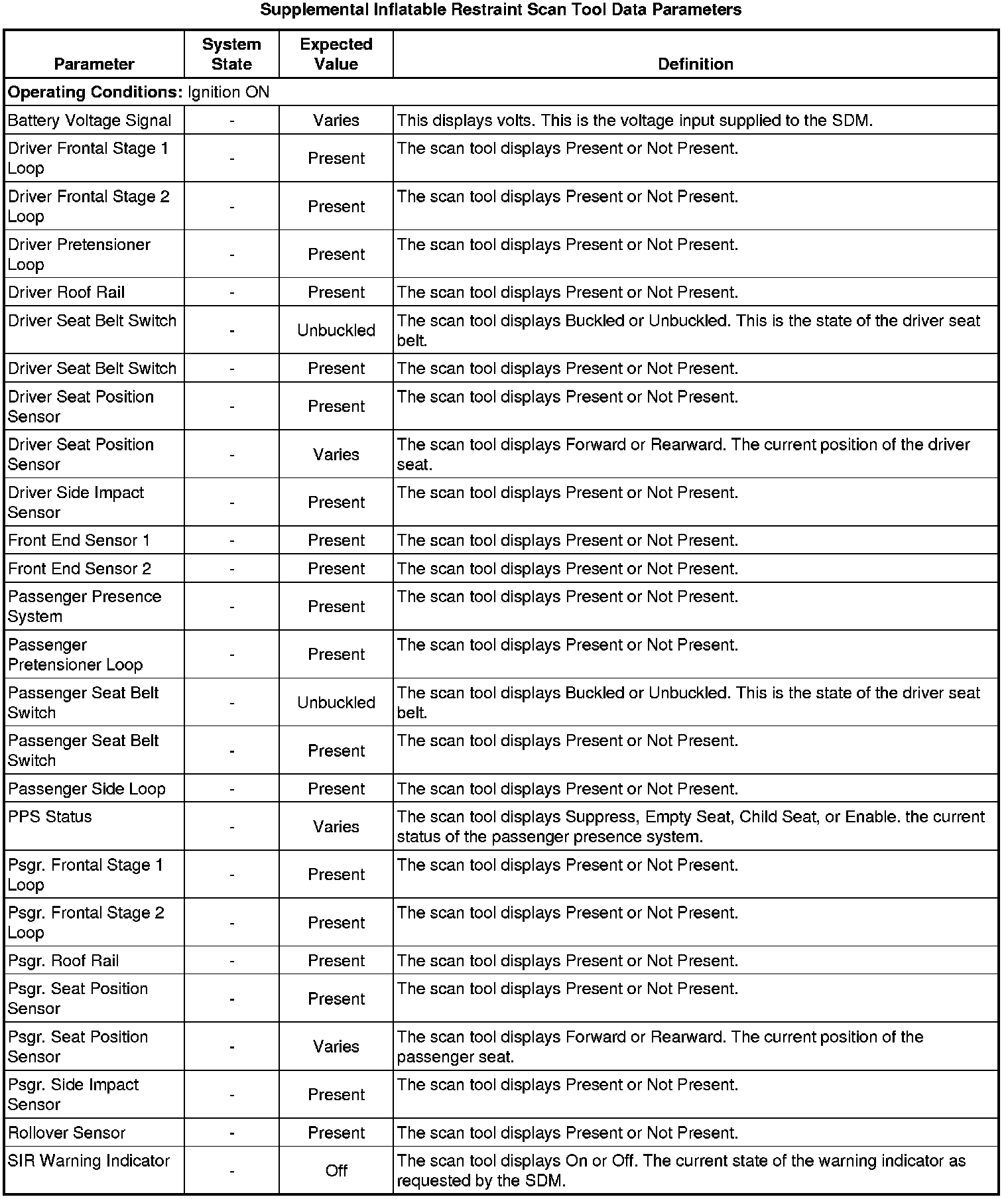 Inflatable Restraint Sensing and Diagnostic Module Scan Tool Information