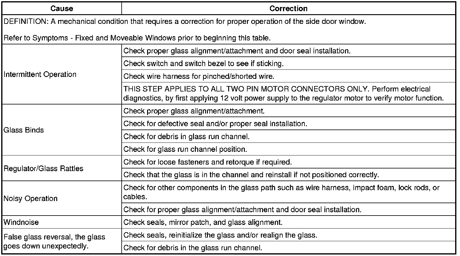 Side Door Window Mechanical Diagnosis