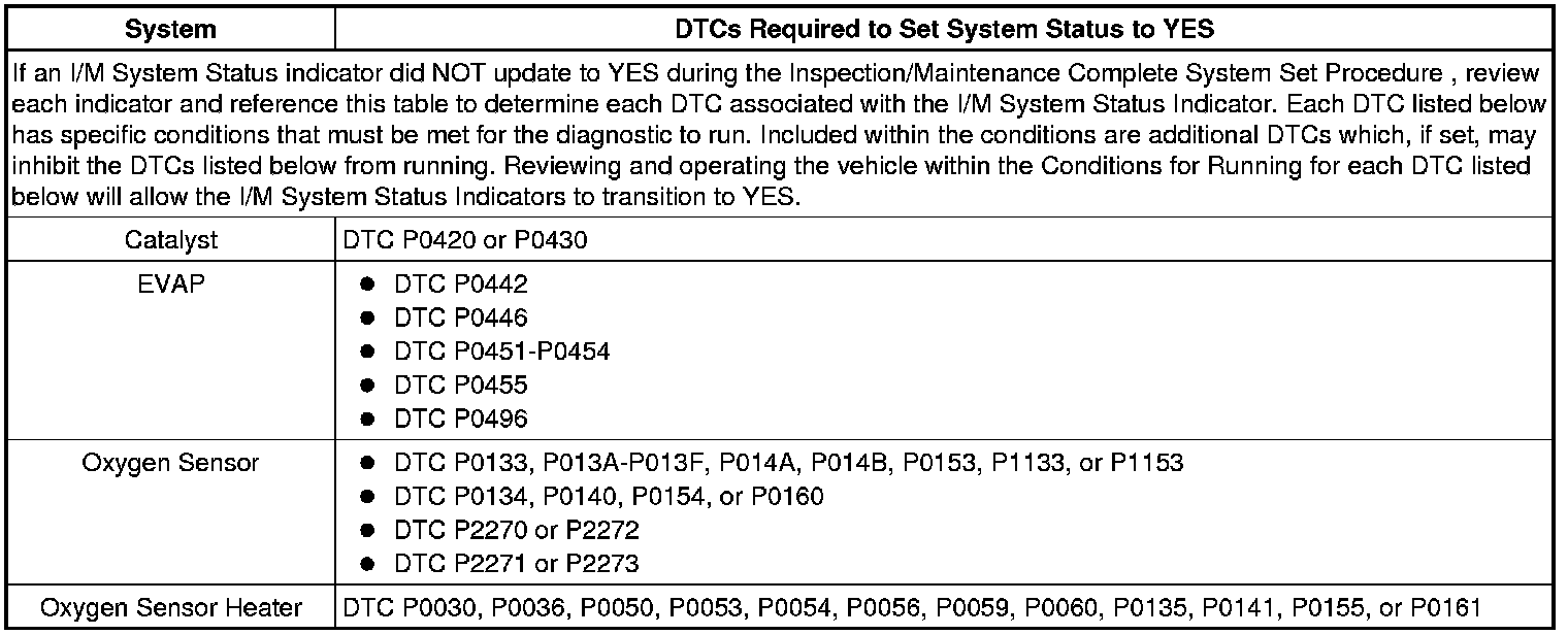 Inspection/Maintenance System DTC Table