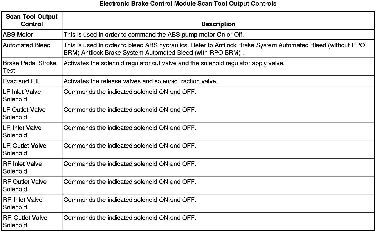 Electronic Brake Control Module Scan Tool Information