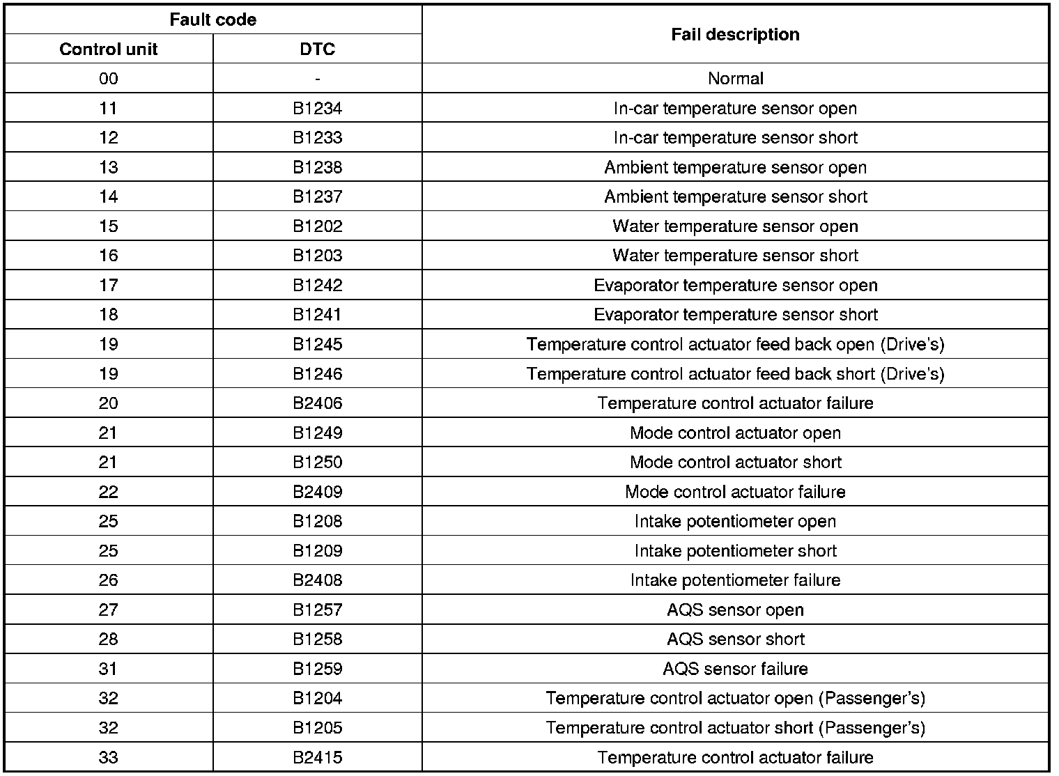 (1) In-car temperature sensor: Control with the value of 25°C(77°F)