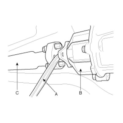 2. Using a flat tool(A), separate the propeller shaft(C) from 4WD coupling(B).