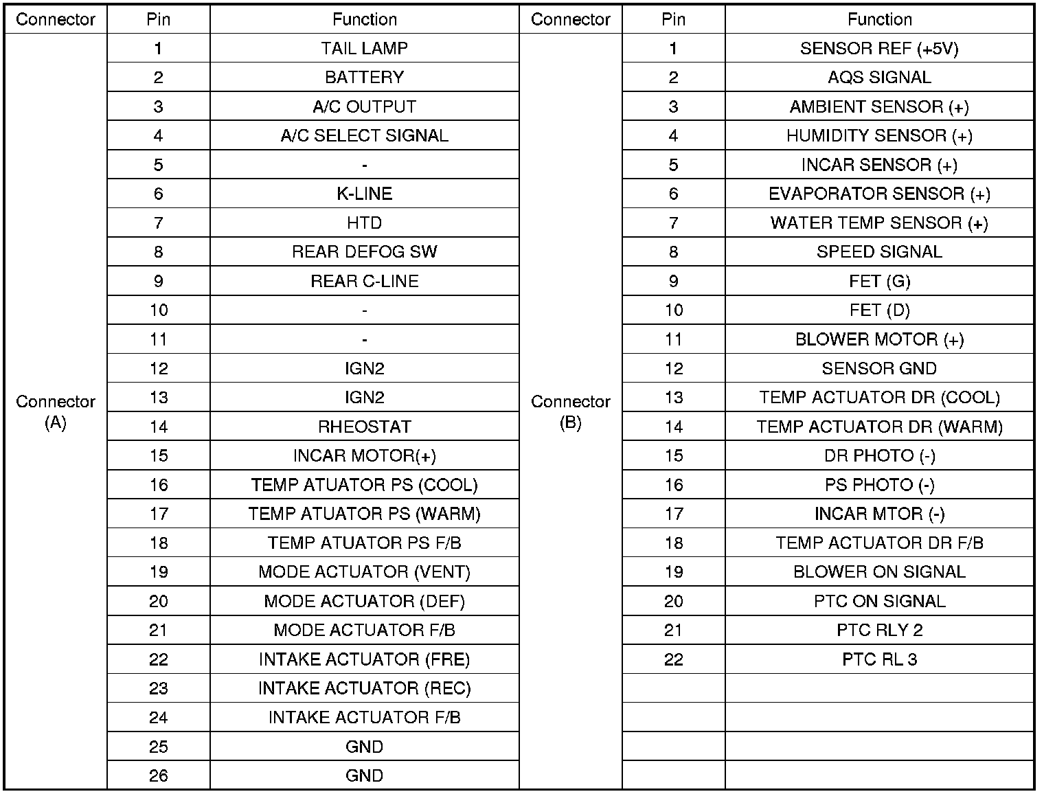 Connector Pin Function