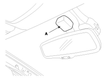 1. Push the inside rear view mirror base (A) down to remove to inside rear view mirror assembly (B).