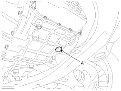 1. Remove the drain plug (A) and reinstall the drain plug after draining ATF totally.