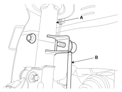 7. Loosen the bolt (A,B) and then remove the upper roll rod bracket.