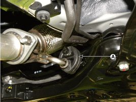 14. Loosen the nut (A-2ea) and then remove the sub frame damper (B).