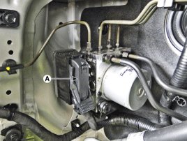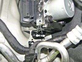 5. Loosen the HECU bracket nuts (A) and then remove HECU and bracket.