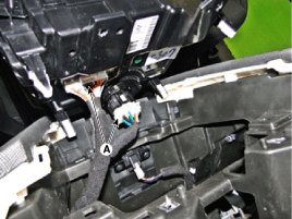 4. Disconnect the connectors (A) and then remove the heater and A/C controller.