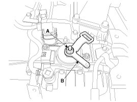 6. Remove the manual control lever (B) and the washer after removing a nut (A).