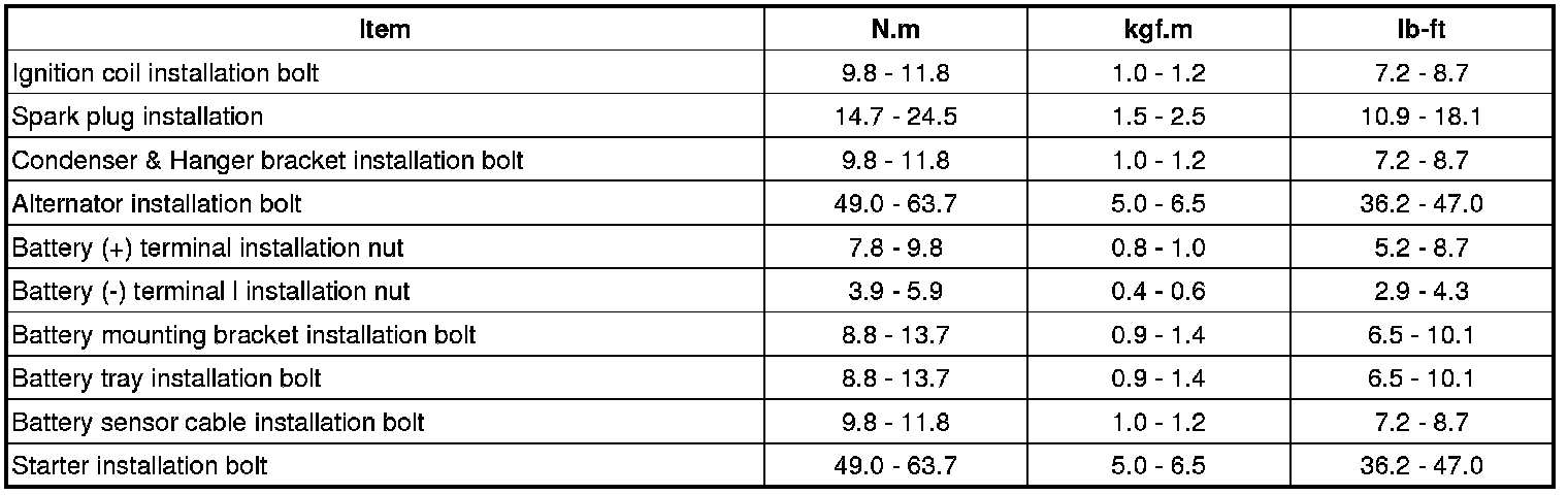 Tightening Torques
