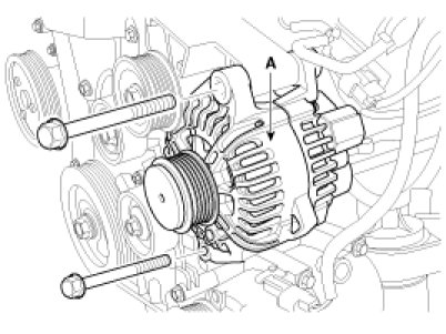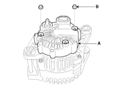 1. Remove the alternator cover (A) using a screw driver after loosening the nuts (B).