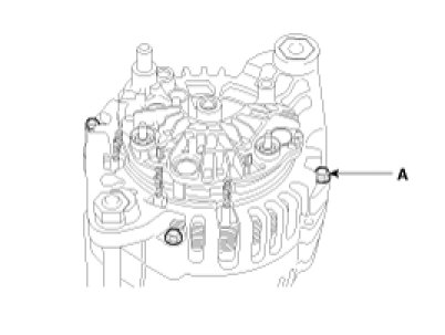 2. Remove the slip ring guide (A) and then loosen the mounting bolts and disconnect the brush holder assembly (B).