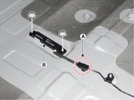 3. Remove the interior 1 antenna (B) after loosening the mounting nuts (2EA) and disconnecting the connector (A).