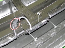 4. After loosening the nuts (2EA), remove the exterior bumper antenna (B).