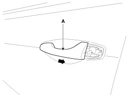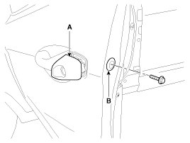 2. Remove the door outside handle cover (A) after separating the plug hole (B) from the door and loosening the mounting bolt.
