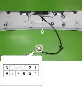 3. Disconnect the antenna connector (A) on the center of rear bumper.