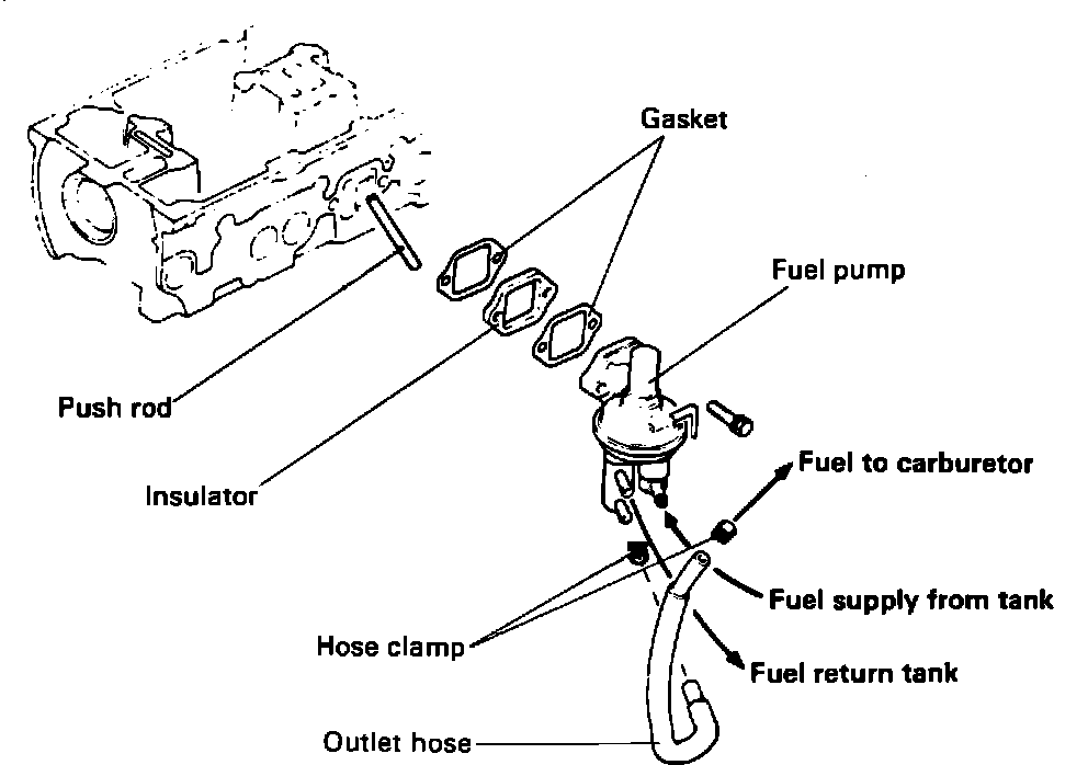 The fuel pump is located between the intake runners of the intake manifold, on the side of the head.