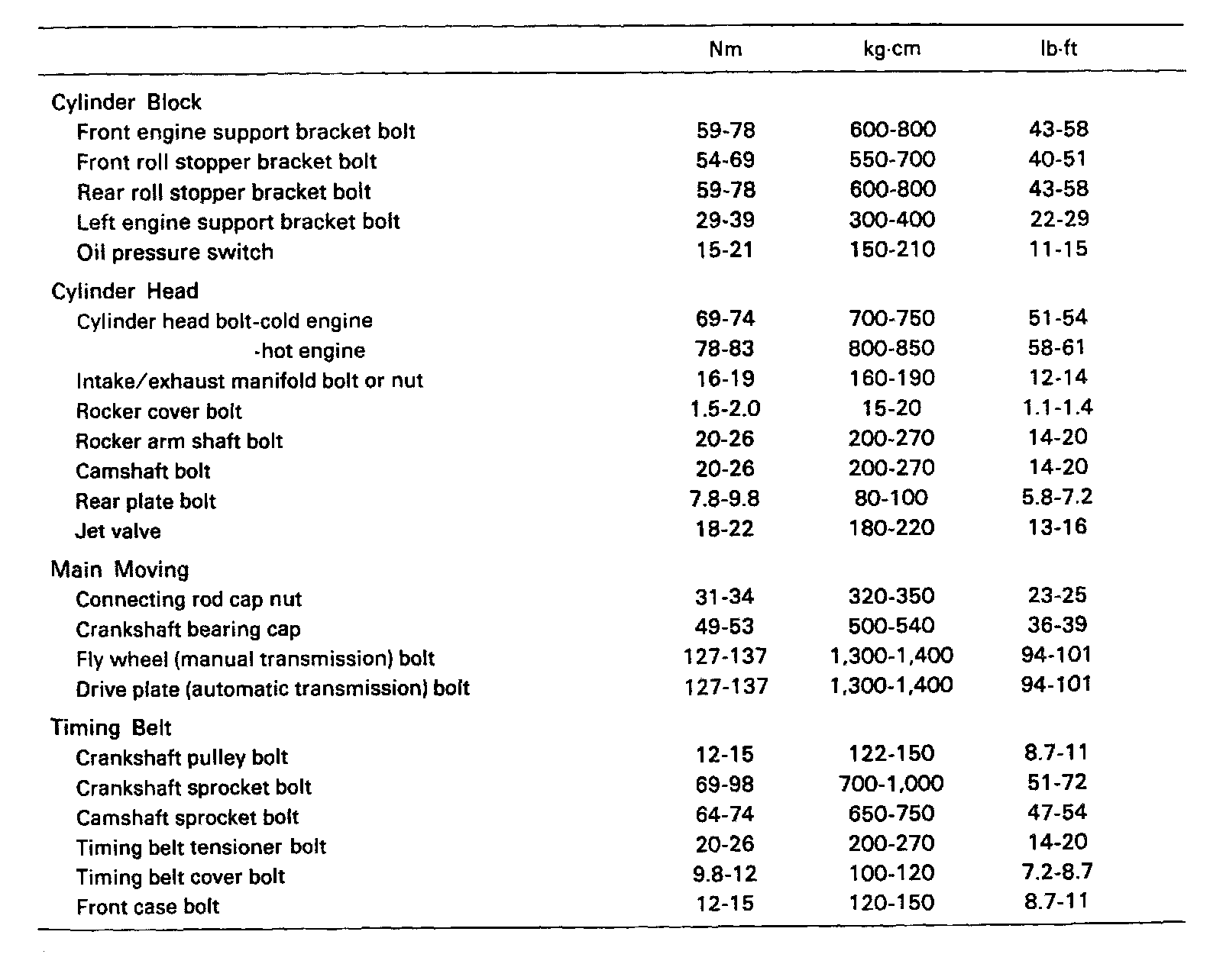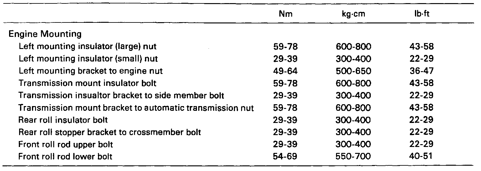 Tightening Torque Specifications