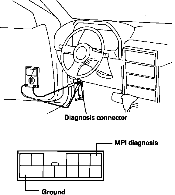 1. Connect an analog voltmeter to the ground and self diagnosis output pin of the diagnostic connector.