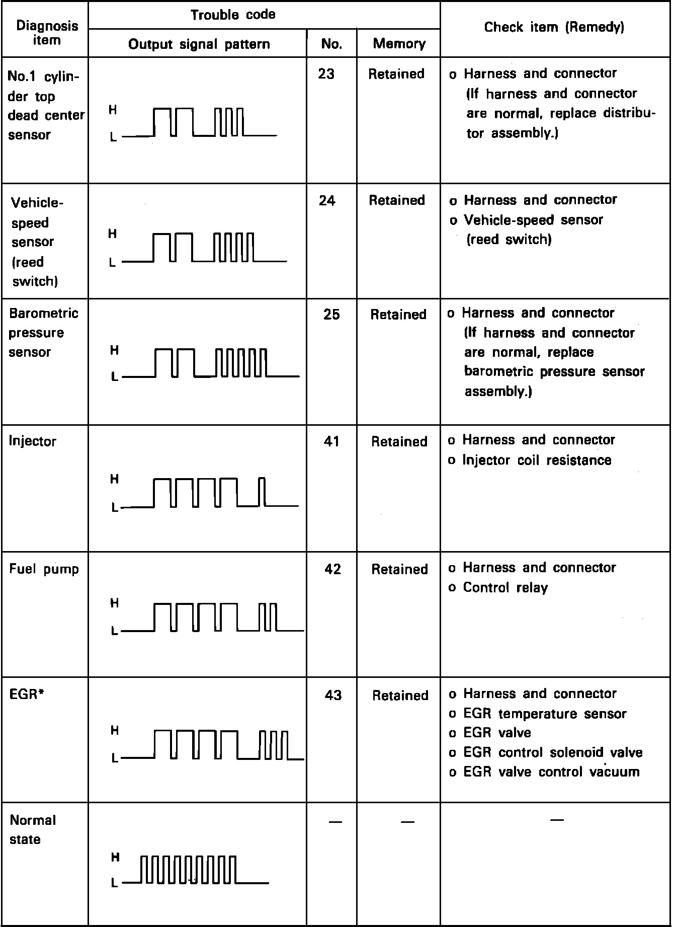 There are fifteen diagnostic items (including normal operation) that will generate diagnostic codes. These codes can be read out using a voltmeter by refering the diagnostic codes chart. The malfunction codes are erased when the vehicle battery is disconnected for more than fifteen seconds. Note! If the oxygen sensor is disconnected during engine operation for testing purposes a code will be stored and must be cleared after the test is complete. Do not however disconnect the battery with the ignition on or the engine running as permanent damage to the vehicle electronic components may result. If multiple malfunctions occur the diagnostic codes will be sent sequentially beginning with the lowest number code.