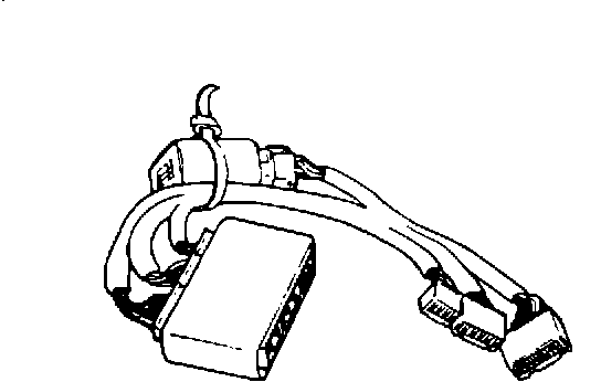 6. Strap the modulator and the extension harness together as shown, and cut the excess tie strap off. Connect one set of extension harness connectors (the end with no red tape) to one side of the adapter.