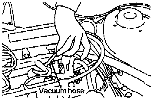 6. Start the vehicle, disconnect the vacuum hose at the pressure regulator and plug the hose end. The fuel pressure at idle with the vacuum hose disconnected should be 46-49 psi.