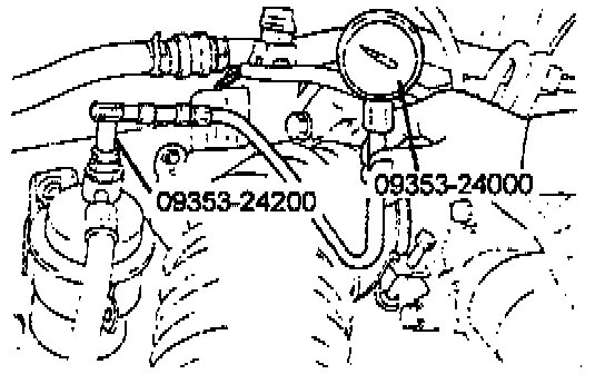 3. Using the Fuel Pressure Gauge Adapter (09353-24000, 09353-24200), install the Fuel-Pressure Gauge to the Fuel Filter. Tighten the bolt to the specified torque.