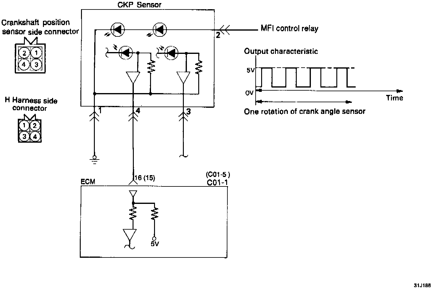 1. If unexpected shocks are felt during driving or the engine stalls suddenly, shake the crankshaft position sensor harness. If this causes the engine to stall, check for poor contact of the sensor connector.