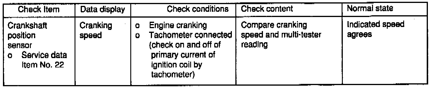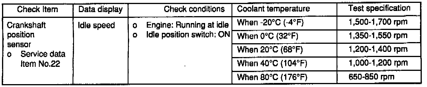 3. If the engine can be run at idle even if the crank angle sensor reading is out of specification, check the followings: