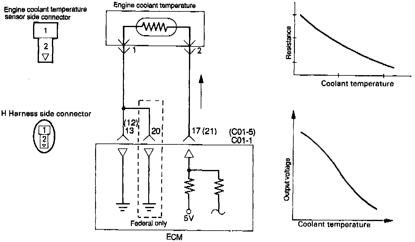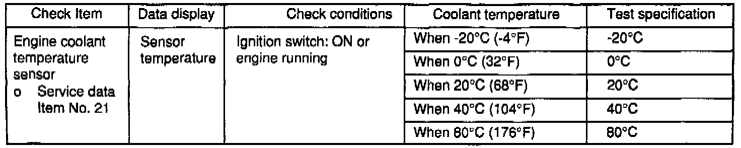 The engine coolant temperature sensor is installed in the engine coolant passage of the cylinder head. The engine control module judges engine temperature by the sensor output voltage and provides optimum fuel enrichment when the engine is cold.