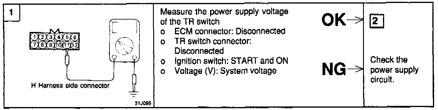 It the transaxle range switch harness check is normal but the transaxle range switch output is abnormal, check for the control cable adjustment.